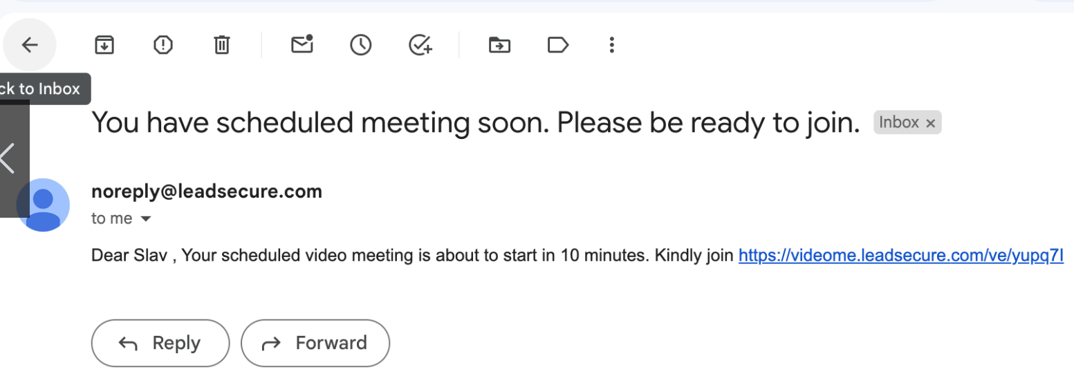 The Agent can configure a reminder email to be sent out prior to their meeting to alert them of an upcoming meeting with a consumer.